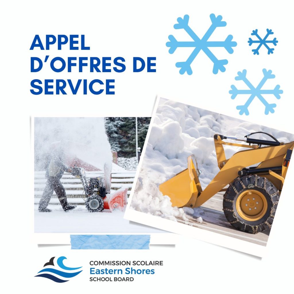 La commission scolaire Eastern Shores est présentement à la recherche d’offres de service de déneigement pour effectuer le déneigement pour l’École régionale Baie-des-Chaleurs située au 67, rue Dover, New Carlisle